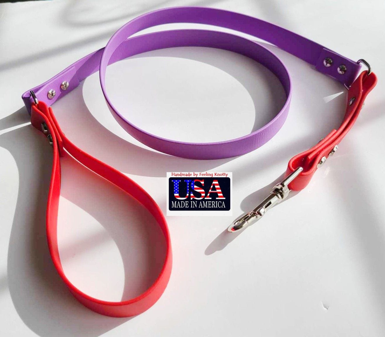 Red Hat Society BioThane Dog Leash Two Tone 4ft Red Lilac Purple